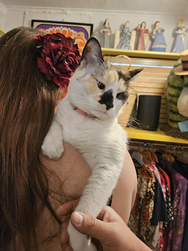 Read moreI visited Glam Factory Vintage in April, and was pleasantly surprised with how helpful the staff were and the selection offered. I went in just looking around and left with a 1950s prom dress! I want to thank the staff for being cheerleaders and making me feel confident in every dress I tried on. And I also just want to mention their adorable cat! My father was with me and within minutes the cat was on his shoulders, which made for an adorable photo. I highly recommend this spot for vintage! (Photos are attached, one of my prom dress I bought from here, and another of my father...
