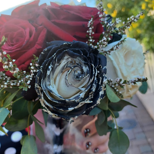 I ordered flowers for my sister's wedding a month before the wedding. I asked for 3 colors of roses one being black. She told me she would have to dye them and I said fine. I had 2 other florist tell me the same thing. I asked for the flowers to be ready at 1:30pm on a Saturday which the wedding started at 4pm. I confirmed my order via text 3 days before the wedding and was told they would be ready. I sent my husband to pick up the flowers and when he arrived she did not have the flowers done. She said she was not thinking we would be on time. She scrambled and came out with the bridal bouquet and said she made a mistake on the color of the ribbon and said it should be black. She said she would fix it and went back to add black ribbon over the white one she had used. She brought the bouquet back out and my husband left to come to the wedding venue. When I arrived to the wedding venue my husband explain he had to change his shirt because black got on it from the flowers and was also on his hand. The black flowers were loosing the black coloring as seen in the pictures and I think they have been spray painted?? I texted the owner from the wedding and told her I was disappointed and requested a partial refund. She said there is no way to dye roses black and if I was not happy she would give me a partial refund.As of today I still have not received any refund. Please do not use...