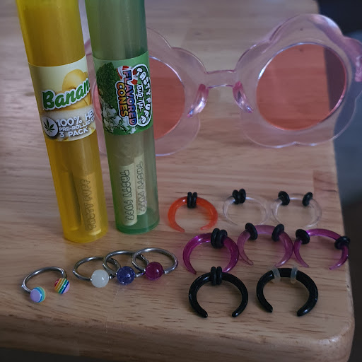 Read moresweet joint (no pun intended ;) ). piercings are incredibly inexpensive (about a buck a piece); they have plugs, claws, tapers, rings, barbells, balls - only issue is that they only really have bigger sizes, so it's hard if you have 16 gauge+! but still some cool sht. got cool bongs/pipes, kinda expensive, but they're unique...