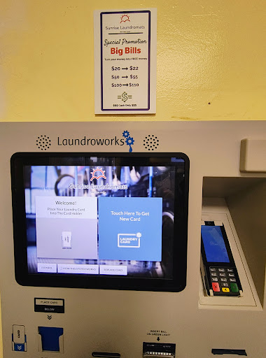 I used Sunrise Coin Laundry yesterday, 10/02/2023. I have been searching for a laundromat that takes debit or credit cards. This one advertised that it did, BUT it requires that you download an app and then use a card to fund the app so you can connect to the machine via your phone. A bit cumbersome, so I didn't partake of this. I brought $10 worth of quarters. The machines all appear new. I was assisted by a very nice lady attendant and she was most helpful, courteous and professional.