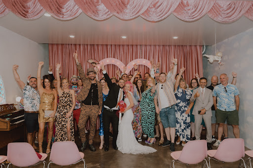 Read moreMy now wife and I have been together for more than 12 years, so we decided it was finally time to tie the knot and we were going to Last Vegas to see The Chicks at their residency, so it seemed like the right time and place to get married. In researching wedding chapels in Las Vegas I came across The Sure Thing Wedding Chapel. The web site is super self-explanatory and easy to use. We booked a 15 minute ceremony with a witness and Elvis as our officiant. We arrived 5 minutes before hand and waited for them to let us in (this is the only downside--there's no waiting room and Vegas is hot. The solution is don't show up too early and you can wait under the shaded awning. Not a big deal). Elvis came out right on time and let us in. Elvis was kind and warm and made us feel welcome and special immediately. The ceremony was surprisingly awesome as references to Elvis songs were seamlessly worked into it. It was actually really sweet and meaningful, which we didn't necessarily expect. And quick! After, Elvis graciously took a TON of photos with my phone, and I must say it's clear Elvis has done this a lot, because the photos are great! (Tip Elvis well, as this is a courtesy, not part of the package, and the photos will be wonderful). If you want a classic quick and easy Vegas wedding in a truly unique and authentic setting I can't imagine you can do better than The Sure Thing. It was a wonderfully memorable and fun experience! Afterwards we went right next store to Downtown Tattoo (a fantastic shop) and got matching tattoos as a prelude to The Chicks concert later that night. It was truly one of the great days of our lives and we are super grateful to Sure Thing for playing such a...