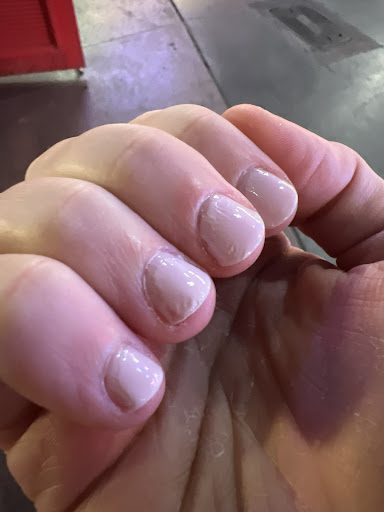 I came in and I was given a totally different nail tech who I had specifically not picked simply because they didn't have experience. I then had a very sub par pedicure, with very unevenly filed nails , and poorly applied polish. I specifically wore flip flops to make it easier for the salon (so I wouldn't need the cheap and wasteful kind of salon flops) but instead of putting ANYTHING on my feet she told me to just walk barefoot over to the manicure station from the pedicure chair, across the room - what?!? So the entire manicure I'm sitting there barefoot, with my lotioned feet on the ground underneath the manicure table where numerous dirty shoes had been. So gross. The manicure was better, but polish was very poorly applied, with the sides not being fully done.