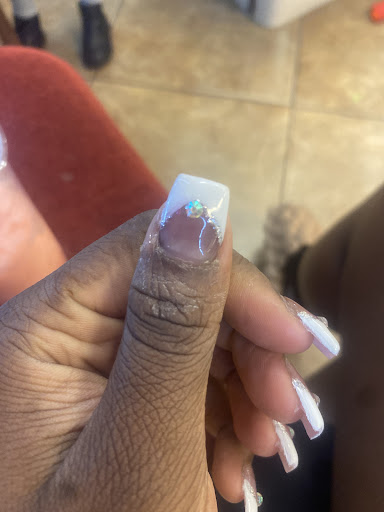 I went in for a full set. Simple white tip. The girl that did my nails cut into my cuticles making me bleed, then super glued her own finger to the white tip on two of my nails which looked like a black spot on the white tip (I asked her if that would be taken care of she said ues yes don't worry) and then did nothing about it. She then tried to shape them and all 10 nails were different lengths, shapes and she filed into the white tip so only the clear acrylic was showing. I waited patiently while her and her coworker tried to fix my nails but only made them worse. Oh and the cherry on top was when she glued the white tips on they were just about all crooked. They wanted me to stay another hour so someone else could fix them. I said no and they demanded I pay the full amount. I told them I would pay for their materials to which they said we will give you a $10 discount. I paid more than I should've for just materials & left there. I now have to find another nail place that can remove them and redo them completely. I'm so disappointed and upset. Worst customer service ever!! And very dirty and unsanitary. I had to ask for alcohol multiple times to clean up the blood from my cuticles. They tore a small piece off of a used paper napkin and handed it to me with...