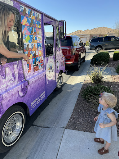 I, despite being 19 years old always get giddy when I see the ice cream truck pull up in the gas station I work at. The blonde woman who I assume is named Christina based on the card she has is always so nice and smiley. Iirc the ice creams are like $5 a unit which can stack up but in fine with that, we all have to make a living especially nowadays. I hope she continues to come to this gas station so I can continue buying ice...