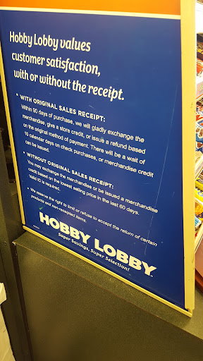 Read moreI bought an LP frame here at the Laurel Maryland store that had a stressed area in it. When I unwrapped it from the plastic when ready to use, the glass simply cracked. I did not have a receipt, and I suspect that it got into my shred pile by mistake. :-) However, I was not concerned because of the store's exchange policy, or...so I thought. I had given this chain a LOT of business over the years in another State. Anyway, I brought the frame there for an exchange, and the cashier immediately called the manager on the phone. The manager promptly told her (without even looking at my item) "no exchanges without a receipt." PERIOD. I showed her the policy that is prominently displayed, and she showed me the disclaimer at the bottom that indicates it is up to store discretion to refuse return on "certain items." So, no exchange on defective items either? My item was not even looked at. The cashier was very nice, by the way. She was just following orders. I am taking this to corporate because I was a GOOD customer at their Jackson MS store and it seems that the Laurel (Maryland City) store has gotten away with this for too long. Will try shopping the Columbia store. 10...