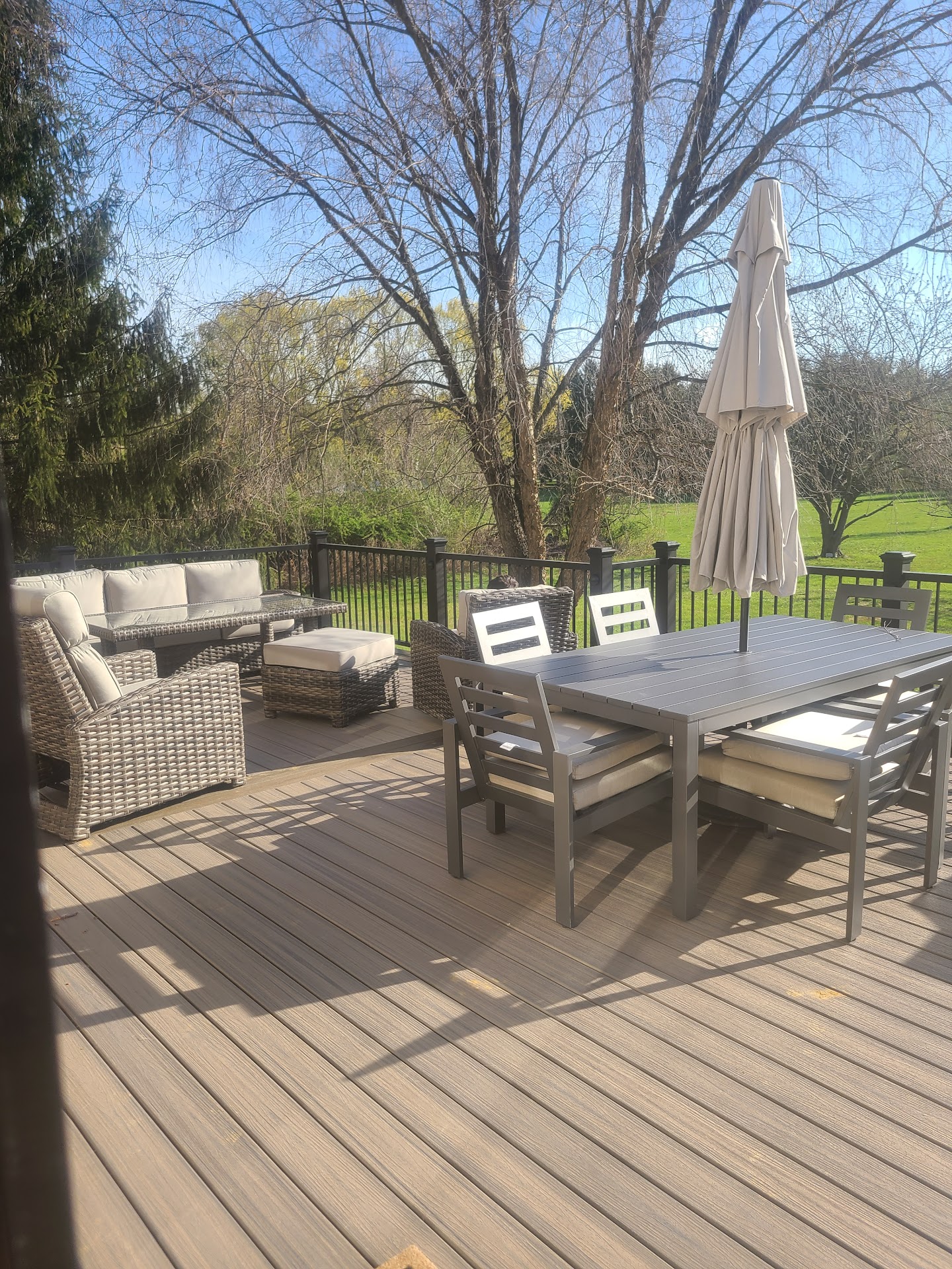 We bought two chairs for our deck along with a glass table/firepit two years ago from the Fortunoff Backyard Store . We really needed two more chairs, but didn't have the money at the time. We took a chance this year that Fortunoff Backyard Store would still have this line of chair.