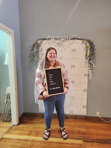 J.Lynn Bridal was a gem hidden away that I was so thankful to have found. After having a disappointing experience at another salon, I took a chance and booked a last-minute Thursday night appointment with J.Lynn’s. Upon entering into the salon, I was greeted by Kay, who was going to be my consultant for the night. I was offered water and sat down to discuss the types of dresses I liked, didn’t like, was willing to try on, and most of all my budget. I was very adamant that I had a budget and wanted to stick with it. Kay understood me completely and took me to comb through some dresses on their main wall, which was their active stock of dresses. We then went to the other side which was their discount dresses side. They were having a sample sale when I went in and the dresses on that side were deeply discounted. I tried on about 6 or 7 dresses and out of those I had found the dress that became the one I wore to my wedding. Everything about the dress both met my expectations and surprised me, as I never would have thought I would have worn a dress with a high neck. I knew it in my head, my heart and my gut that this was my dress, and not only was the dress perfect, my experience was too. Kay took every minute to listen to what I had to say about each dress and she responded to both my verbal replies and my nonverbal ones and never once pressured me towards buying a dress. She said it had to feel right to me! Rather than be out on a stage in front of other brides, it was just myself and Kay, which I appreciated much more than I realized. I highly recommend J.Lynn Bridal for those who are wanting an intimate experience, quality, affordable dresses, and wonderful staff to help you through every step...