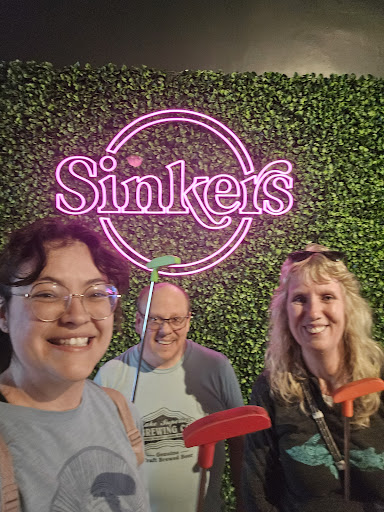 Ā Ā Ā Read moreSinkers Lounge in Lawrence, KS, offers a delightful indoor mini-golf experience perfect for date night. The mini-golf course is charming and fun, complemented by unique tabletop golf, which was a new and enjoyable twist for us. The staff (Sarah and John) were exceptionally friendly and helpful, enhancing our visit. Although we didn't try the axe throwing this time, itās definitely on our list for next time. Don't miss the āAxepressoā drinkāit was delicious! Overall, I highly recommend Sinkers Lounge for...