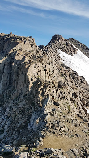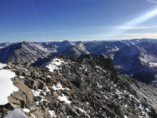 Beautiful views at the top. For those that do not like heights. There's plenty of distance on each of the trail before ledges. Trail hugs the east side which is less steeper than the West. A handful of areas where you have to climb a 4-foot rock but nothing higher. Was still some snow and ice at the top. But nothing you had to cross or couldn't go around. Less crowded than Longs. 6 at sunrise versus 40.