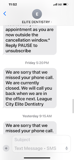 Well I get the call that my new trays are ready. I go back in March 2020 to get them fitted and put in. They finally fit perfect for the first time in 13 months. So here I am thinking okay, the orthodontist messed up, Iām ahead on payments, itās fine. I go back 6 weeks later to get my next set of trays. I decide not to pay since Iām ahead. Well the next time I try to book an appointment the office manager tells me that I owe $1200 and cannot be seen until this balance is paid. Then to top it off she tells me that the remaining balance is $2000 something dollars. Now please tell me how thatās possible when I have receipts showing the remaining balance after I paid each time and the previous balance owed in full was $1800 last time I checked. Obviously I was upset and I decided to stop services here immediately. I wrote to Invisalign to complain about the service I received here. They apologized for the orthodontist and said I can resume my treatment at any Invisalign certified orthodontist of my choice but unfortunately cannot refund my money since Elite Dentistry is a private office.