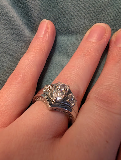 Read moreI had the pleasure of working with Jordan and Kasey to create a new design for my original wedding ring. They were very easy to talk to and I felt like they were actually listening to what I wanted. I explained that my ring (first picture) kept needing to be repaired because the prongs were breaking around my diamond. I figured the setting was too high and I needed something low set. I mentioned that I wanted to keep my diamond, sapphires and baguettes and was interested in an art deco/vintage piece to put them into. Jordan was very perceptive and made me feel like he was excited to bring the piece to life. We went through 3 designs before the last one (pic 2) - I was in love! From the first day speaking to the time my ring was complete was probably 2.5-3 weeks total (pic 3). I would recommend them to anyone in the area for their jewelry needs. The only thing I wish we could have done differently would have been the 3D printed mold that other customers have spoken about in their reviews. I did not have the opportunity to have one to look at and wear first, which would have been beneficial because the new ring felt so dainty that I would have definitely asked them to make a matching band with the diamonds I traded in for credit. As it was, we found a band on Etsy that matched perfectly, and while they both fit a little large, a small ring sizer helped keep them in...