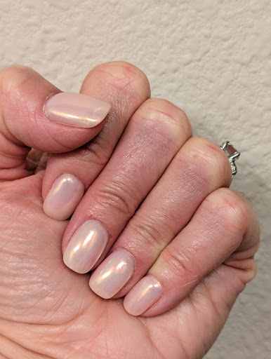 Read moreUpdate: Bryan has done my manicure the last two times and two different people have done my Pedi. Today or was Lynn. I don't remember the name of the young lady who did it in Nov. These last two times have been fabulous! Bryan a addressed one small issue I was having with my terribly weak nails and my Mani in Nov lasted much better. Today, I got these! I'm not big for lots of color on my nails but I wanted something festive for the holidays. When I saw another customer with this look, I knew that's what I wanted! Color 168 with Chrome on top. I am so happy I can't stop looking at my nails. They are PERFECT!! The photos don't do them justice.
