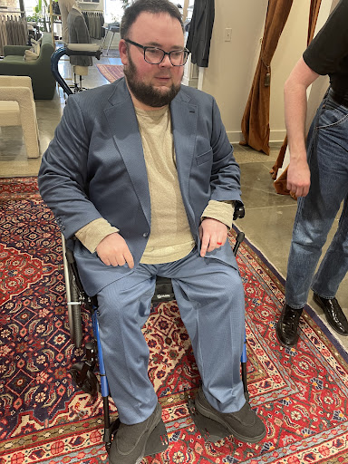 I called in early January and spoke to Amy. I told her what I was looking for…told her my situation of using a wheelchair as well…I also told her about my wedding suit and the horrific memories…but also about my visit to another suit place a few days earlier and how my wife and I felt like we were an afterthought for multiple reasons and how that made me as a consumer feel.