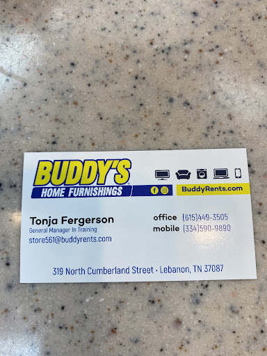 Read moreWe had an excellent experience shopping here. Sales representative Tonja set us up with a bundle deal that blew away anything we had seen at Smith's Galleria Furniture less than an hour earlier. She was polite, confident and most of all knowledgable about her job and it's requirements. Those traits made us feel more comfortable while we was browsing the store. Even without the deal, the prices we had seen at Buddy's was impressive and had made us desiring at least one item to purchase. This location's size to me is the only negative "take away" that I could find in comparison to the competition I just been to. However, this perhaps may have been a blessing as Buddy's isn't experiencing a "going out of business" situation at this time. The business was clean as I did not see dust or debris that would indicate the items being sold were sitting for weeks at a time.