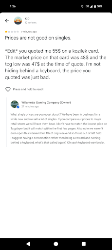 Edit I'm making one last edit as the owner edited their comment. the owner had said I was a coward and hiding behind a keyboard for leaving an honest review. He is now calling me a bully? I'm not sure what I did to bully you, you were the only one who resorted to name calling when someone left a review that you didn't agree with. The card wasn't in the first page of prices as your review said, it was literally like 3 pages back. You some very big emotions, there, big guy. Learn some customer...