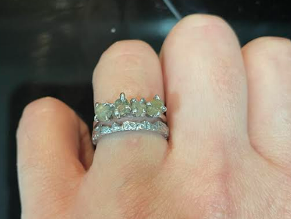Recently, I had a chance to meet Jim's brother Kurt, regarding my wife's wedding band that belonged to my grandmother who is deceased. Originally we had grandma's engagement band melted and fit to our engagement band leaving grandma's wedding band unused. So, Jim said the he could melt it, and make a custom third band.