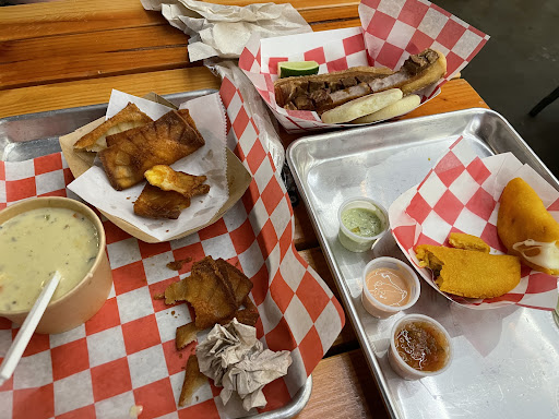Read moreI'm reviewing as someone who just came in to drink-you go in the doors and there's a kitchen front with supplies for sale? Pop over to the bar to grab a beer. Decent selection and price on beer and wine, did not see a cocktail menu. Noticed a bunch of random blackboards with names- I ask the bartender about food and then get told I order at each one individually. All of the food was great! (Sticky wings, baba ganoush) I am dropping a star for the dj-went from standard Saturday night mix to Spotify blasting. I really want to like this place but would have preferred a host at the front door or video like welcome to this concept here's how it works. Also would have like to seen a craft cocktail or two. I'm going to try again for dinner and see if it is better...