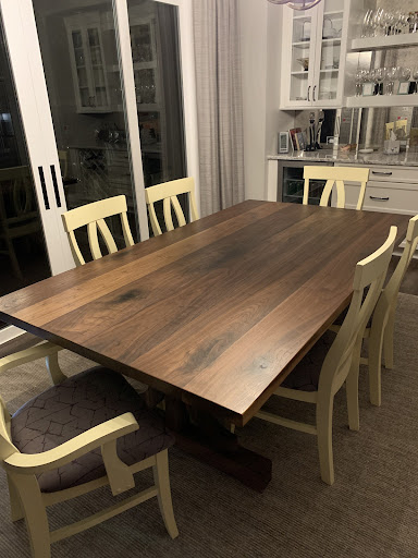After failing to find an appropriately sized dining table for our new kitchen, I came upon Luke’s website when I was googling custom tables. Luke FaceTime’d me, to help measure the space and make sure the size was correct. He gave some very good information about size and type of wood which helped me make the final decision. We now have a gorgeous Dining table. It is so beautiful that the picture does not do justice. Luke was also able to get us the custom chairs and he matched the wood on the legs of the chairs to the table. These are well-made chairs, and they are comfortable, even if you have problems with your back. Thank you again, Luke,...