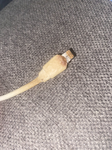 Well finally I set the sofa in other place and this happen with my charger. After an hour (1 HOUR!) of being connected, Thanks god I discovered on time! Imagine what accident could be happened! I have a baby! It was my firs tough! I’m so upset and scared that something else could happen, most of the time I’m at work , and my babies at home with my mom..