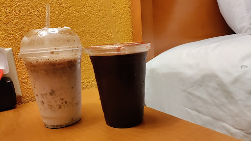 I asked for a 16oz Jamaica and a 16oz coconut with chocolate chip ice cream shake. They topped it so nicely with a cherry and some whipped cream, but I didn't take a picture in time for the ice...