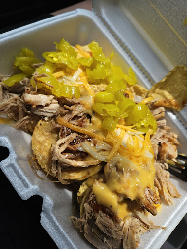 Read moreSaw the food truck at Walmart today and when I tell yall the smell alone had me hooked, you best know it did. Let me just say, these folks KNOW bbq! I got an order of the BBQ pork nachos and they were heavenly, I don't clean plates usually but I left mine spotless. These folks do not skimp on portions either! I had a platter that weighed about 1/2 a lb and most of it was meat! Give these folks a try, yout stomach will...