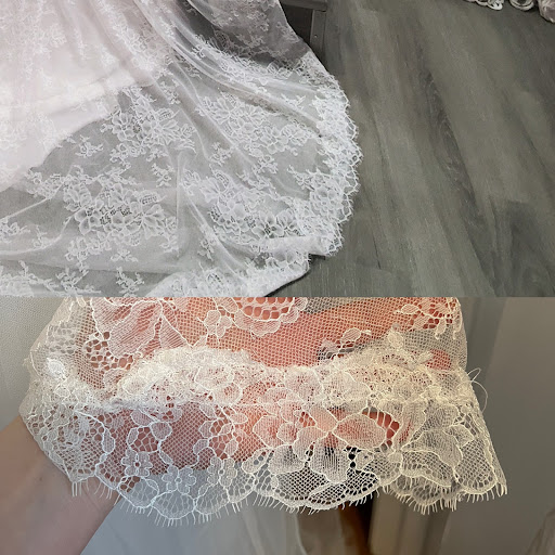 Read moreDo not take your wedding gown for alterations here. At first I thought it was going to be great. Had a first pinning with a very nice person, but it was not the seamstress. Should have been a flag. Not sure if that is common practice but donât ever allow it. I went to second fitting and the hem was way too short, seamstress verbally admitted that she didnât understand the way it was pinned by other employee, and said it was temporary and could be brought down. This is what I ended up with, see photos of my now ugly hem and also a hole that wasnât there. I know lace is hard but this is so obvious, and I took it to another expert seamstress who said thereâs nothing that can be done because of the machine sewing and how it was cut. She also got a hole in a mesh side cut, and blood swipe on straps and forgot to remove it before my final pick-up day. It still didnât come all the way out with whatever spot treatment she used. Breast cups were sewn in a different place than pinned. New seamstress is reversing almost everything that was done, a few hundred...