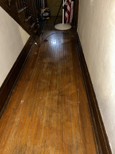 Once I cooled off and came back inside, now the new fridge is in the kitchen and “installed”. Once they had the new fridge installed and “good to go”, they dipped out without saying anything because we didn’t know about the marks they left yet. When they brought the new fridge in the house they left 2 scrape marks on our floor that run the whole length of the hallway and left a scrape mark on one of our walls. They didn’t tell us what they had done so we wouldn’t find it til after they left. I went to see if they were still here and then saw the marks. They walked the hallway that they left the marks in to leave for their next install, there’s no way they didn’t see what they had done as they left.
