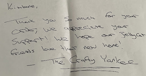 Read moreThis will be my second order from Crafty Yankee . My first order was fast delivery with a nice hand written note. Great service . Just this morning order 2 more items . The staff at the store went above and beyond by calling me to let me know there was an item out of stock . Friendly helpful and replaced it with the same item but different color. The staff member definitely went above and beyond with great customer service! Thank you for the amazing service ⦠I will definitely keep ordering online. 100...