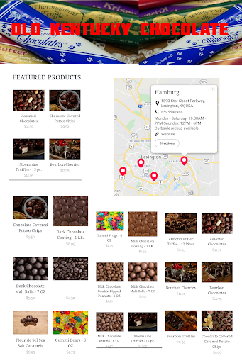 My wife and I went to this location for a Birthday gift for our son that is in the Air force. He is stationed in Las Vegas Nevada and wanted to send him a special gift only kentucky could give! Business was very tidy and has a plethora of gift ideas and of course THE CHOCOLATE! We originally went to purchase there popular assortment of candy bars that most local schools and non profit companies use for sale drives. Only to find out due to Coronavirus, that only the milk chocolate bars were available that time. Our main purchase was going to be there signature chocolate peanut butter melt away candy bars! When asked about, the employee we talked to seemed a little irritated with our suggestion. When she let us know they weren't available. My wife and I were taken back at first with the way she told us. But soon after we shrugged it off knowing she probably has been dealing with frustrated and irate costumers that didn't take the news of them not making any more custom candy bars till further notice! After a few minutes of walking the store we viewed there wide selection of chocolate candy that you can purchase by the piece? or in bulk. Recommend buying a gift box! Individual pricing was a bit off for my taste at 89¢ a piece for most options. Didn't seem accurate for the size of some pieces. We finally decided on purchasing a 15pc chocolate peanut butter candy assortment with custom gift box to add that personal Old Kentucky Chocolate feel to remind him of home! All and all it was a pleasant experience. And will definitely return in the future!