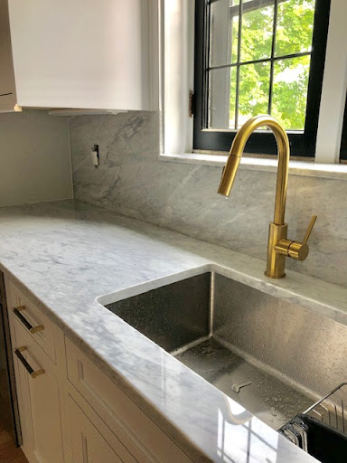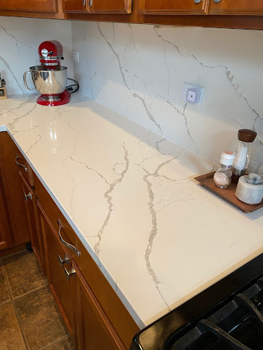 My only critique is that the men weren't wearing masks during the installation. I already had COVID so I didn't ask them to put masks on, but if I hadn't already contracted the virus I probably would have felt uncomfortable. We also needed to add a seam to one of the slabs after making our deposit for two seamless, L-shaped slabs. The team was flexible in determining where to place that seam to make it as subtle as possible though.
