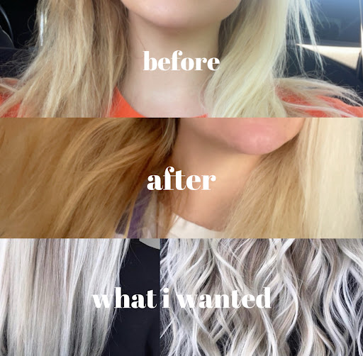 I had went in as some what of a last minute decision since my regular hairstylist didn't have any appointments set up till she received her second COVID shot. I did not have a good experience. I went in to only touch up my highlights and lowlights, from where my hair growth was towards my scalp. I have done this numerous times before and never had any issues with my stylist. I will say this Customer service was awesome! However customer service is not what i paid for I intended to pay for my hair to be done. I walked in at 10am and didn't leave till 3:30 p.m.. The first round she took her time - everything was great! Neither her nor do I understand what happened but the color turned an immediate gold not the platinum or silver at all which would match the rest of my highlights. It was a noticeable difference. She reapplied for a second time left it in a bit longer, put some toner on it and my hair turned purple. I assumed it was the toner - paid and left. I walked out to the car in the sunlight I looked in the mirror and absolutely hated it. It was not a professional job - my stylist said "that is unacceptable they need to fix that" i walked in and told the store manager - she even mentioned my hair looks almost green. My stylist was on the phone and had to tell the colorists exactly what to do in order to get my hair to a normal color. Worst experience on my...