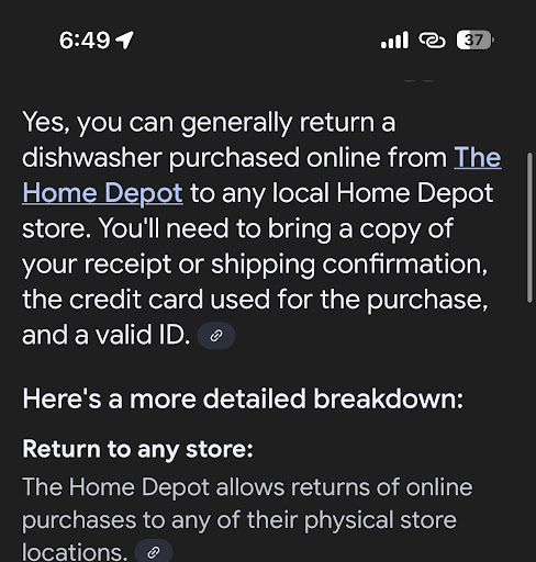 Read moreNOPE NEVER WILL I EVER PURCHASE ANYTHING FROM THIS STORE EVER AGAIN SPECIALLY APPLIENCES,PLEASE DO YOURSELF A FAVOR AND PURCHACE YOUR APLIANCES SOMEWHERE ELSE,I BOUGHT MY MOM A STAINLESS STEEL SAMSUNG FRIDGE MORE THAN A MONTH AGO,IT FINALLY ARIVED THIS PAST SUNDAY,MINE YOU IT WAS POURING THAT DAY, SO ANYWAYS I GET A PHONE CALL STATING THAT THE FRIGE WAS ON ITS WAY AND I WOULD BE EXPECTING THE DELIVERY PERSONEL TO ARIVE IN LESS THAN AN HR,KID YOU NOT THEY ARIVED WITH THE FRIDGE AN HR LATER SOAKEN WET,I WAS ALREADY ANNOYED AT THE FACT THAT THE FRIGE WAS WET AND THEY DIDNT EVEN OFFER TO HELP DRY IT OR ANYTHING,MY MOM STARTED DRYING IT AND NOTICED SOME DENTS AND SCRATCHES ON THE LEFT SIDE OF THE FRIGE,I IMMEDIATELY CALLED THE STORE AND ALL THEY DID WAS TRANFER ME TO CUSTOMER SERVICE WICH AT THE TIME WAS ALREADY CLOSED SO I CALLED THE DAY AFTER WICH WAS MONDAY TO SPEAK TO A MANAGER AND I WAS TOLD I WOULD RECEIVE A CALL BACK,NEVER DID,I CALLED AGAIN THE DAY AFTER ON TUESDAY WAS TOLD THE SAME THING THAT THE MANAGER WAS UNAVAILABLE BUT I WOULD RECEIVE A CALL SHORTLY,AGAIN NOTHING I CALLED BACK ON WEDNESDAY I IMMEDIATELY GOT TRANFERED TO CUSTOMER SERVICE AGAIN,I FINALLY GOT TO TALK TO SOMEONE, I TOLD THEM THE SITUATION ABOUT THE SCRATCHES AND DENTS AND HOW IT LOOKED LIKE THE FRIDGE HAD BEN DROPPED OR SOMETHING AND IT WAS DAMAGED,AND IF THEIR WAS ANY WAY OF RETURNING IT OR EXCHANGING IT,TO WICH I WAS TOLD BY THE CUSTOMER SERVICE REPRESENTATIVE NO,THAT THERE WAS NOTHING THEY COULD DO,SINCE 48 HRS HAD PASSED,I COULD NOT BELIEVE I WOULD BE STUCK WITH A $2,300 BEAT UP APLIANCE FROM HOME DEPOT,THIS JUST MAKES ME SAD AND MAD BECAUSE I BOUGHT THAT FRIDGE FOR MY MOM,THIS IS HORRIBLE CUSTOMER CARE,WHO WOULD WANT TO GET A SCRATCH BEAT UP EXPENSIVE FRIDGE THIS BY FAR HAS BEEN THE WORST EXPERIENCE I HAVE EVER ENCOUNTERED,I DONT KNOW IF ITS THE DELIVERY COMPANY OR HOME DEPOT ITSELF BUT THEY REALLY NEED TO DO SOMETHING TO KEEP THIS FROM HAPPENING TO ANYONE ELSE,JUST TAKE MY ADVICE AND GO SOMEWHERE ELSE,I KNOW I WILL,NEXT BIG PURCHASE IM DEFINITELY TAKING MY BUSINESS SOMEWHERE ELSE LIKE...