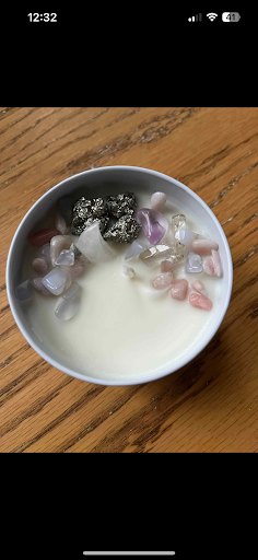 Iâve been using a custom Reiki candle that Natalie made for me, and itâs become such a grounding part of my routine. She took the time to personalize it based on what I was looking for, thoughtfully incorporating stones like Pink Opal, Blue Chalcedony, Pyrite, and Quartz, each chosen with intention.