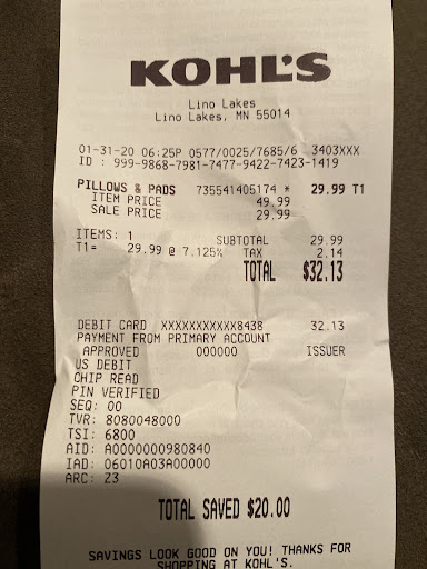 Usually, I have a great experience here. Today was far different. I came in today at about 6:30 pm to purchase a pillow. I got what I was looking for and proceeded to the west checkout. As I approached I saw an employee discussing kohlâs cash with a customer near the customer service desk. There were no cashiers present at any registers, so I kind of held back for a few moments thinking she might head up there. After a minute or 2 I approached and asked if check out was moved to the customer service area and got an annoyed response of âWell, yeah, because SOMEONE is training and I have to deal with issuesâ... kind of a sour response in front of customers. Another lady approached as I asked from the out doors with a return and gave me the âyikesâ face with her response and then tells me I can go ahead of her as we kind of arrived to the line at the same time once I realized that was, indeed, the checkout. We both stand in the area behind the line as another woman is trying to make an Amazon return and is confused how to do so. The woman behind the counter is very short with her and tells her she needs to have a QR code and get it figured out through Amazon before she will deal with her and that she needs to move aside until she does. She then walks to her right to another register to help the next customer. I walk up and she tells me âIâm pretty sure she (pointing to lady who told me I could go ahead) was next.â Woman behind me tells her that she let me know I arrived before her and to go ahead. Meanwhile, nice lady behind me helps first woman with her Amazon app to help her find how to make the return. Cashier says âfine, buy or return?â I respond âbuyâ. I run my card and she says âdo you need a bag- not like it would fit anywayâ I respond âno thank youâ and move along.