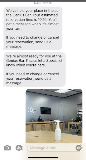 Read moreI have never been tempted good or bad to take the time to write a review. Finally found a reason. Horrible, rude, incompetent customer service. Walked in (I know, on me, not here to complain about the 3 hour wait time, but what follows isn't related to the wait time) was told an hour wait. Ate lunch with my girlfriend killing time, got a text an hour and a half later telling me they could see me. Fine. Waited another hour and a half. Less fine, but I knew without an appointment it would be a long wait. Girl ran diagnostics on my phone, told me they needed to replace it but it was too close to closing so they couldn't do it that night. Called the next day before coming in, was told that I could come in and they would expedite my process due to the night before and it would take about 15 minutes. Came in, was told it would be a 2 hour wait. I explained the situation, the incompetent moron I was speaking to responded "The longer we stand her talking the longer the wait is going to be." Spoke to a manager, she was nice but in the end useless. Told me that they should have went ahead and replaced my phone the night before regardless of whether they were closing. Since it was their fault I asked if she was going to help me out, she told me there was nothing she could do and I would have to come back another time. They already had the notes of what was wrong with my phone. Both employees I spoke with saw the notes from the employee the night before who said she tested my phone and all they had to do (since it was under warranty) was take it and replace it with a new one, which I have done before and the process takes 10 minutes maximum. They refused, and wanted me to schedule an appointment 3 days down the line and come back, like I don't work or wish to drive the 2 hours to the store just for fun. I guess since they are the only store around they can jerk their customers around. Never had this problem before at this store, but will be switching from apple after my warranty expires due to the incompetence...
