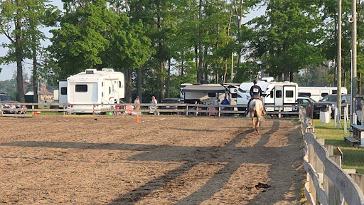 MIHA horseshow was held there for district 18 & 20. We stayed in our camper we had water and power. They do not have pump out. We stayed in the wood horsestalls. There are big chairs bleachers by the announcement booth. They have bathrooms in two locations for these...