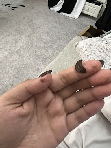 They finally switched me to someone else. That person painted half of my nails solid black (this caused them to have to drill off the color later), which was nowhere near what I asked for. I even told her to only try it on one nail before doing all of them, but she went ahead anyway. At that point, I said I did not want to try anymore and to just paint a solid color, but they kept insisting, “It’s okay, we try.” I absolutely hate when I am the one paying for a service and they still do not listen to what I want.