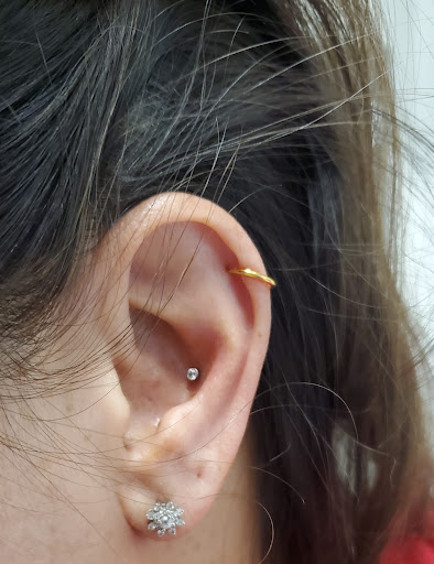 I have gotten piercings in other shops before even out of the country and this piercing was outstanding! I was in a big hurry because my daughter wanted to do an impromptu piercing. Giddi literally came in on her day off to do this and I went first. She was fast and gentle so thank you, thank you, thank you!!!! She was super knowledgeable about the jewelry and answered all our questions. Her professionalism really stood out and what a great personality. I have to say that I have been to high end piercing shops that specializes in real diamonds and their jewelry selection in general was lacking but this place has a really great selection - even though they don't have diamonds I'm definitely going back for a jewelry "glow up"! Thank you so much! WE will be seeing you soon! It's super cute and I'm...