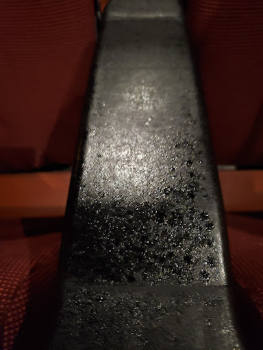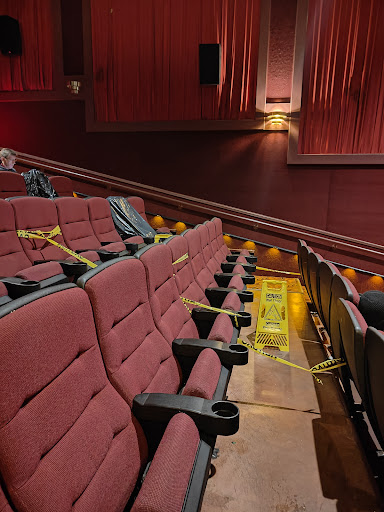 As I was waiting for my food, I witnessed a woman complaining to a young employee about the A/C situation. She asked for a manager, and shortly one came. The manager explained that the A/C system is old and keeps breaking and that with the shortages of stuff from Covid, they can't get anyone to come fix it in a timely manner. Not sure if she obtained a refund or not, for I walked away to go to my movie. But for $5 why complain? As I entered theater, I noticed several chairs broken with caution tape across them. Rugs were stained. But these seats were newer recliners, not the old ones the others posted about. Very comfortable. It wasn't very cool, but dealt with it. I was by myself so no big deal, but I can see a large group being inconvenienced. About 10 more people entered the theatre and I heard them complain about the A/C. Theater is terrible disrepair and surprised they make enough to stay open. Bathrooms had no soap in dispenser, but appeared clean. I enjoyed the movie though.
