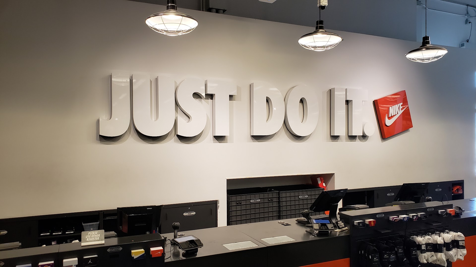 Atmosphere is relax. No pressure to buy. Each time I shopped here I feel relax compared to other Nike Stores I visited. And what I like about this place is Customer Service. Sales here don't force you to buy and doesn't follow you around like you're about to rob the store. They just ask you one time and then they give you space. After that if you do ask them they try to give you information about the product that you're interested in.