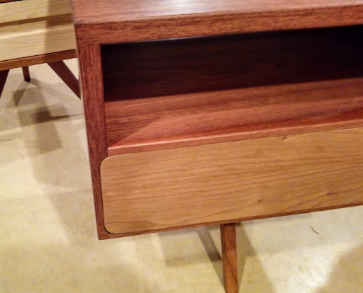 It's hard to express how impressed we are with this furniture, the product of Peter's close attention and inquiry regarding what we were looking for in shape, function, wood species etc. This process included determining some exact dimensions so as to fit constraints of the room the pieces were destined for, structural requirements for an exceptionally heavy mattress.