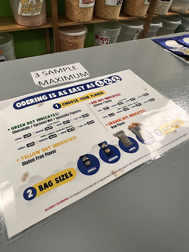Read moreYou don't want to miss this shop! Best popcorn flavors in town! The owner is super friendly and helpful! I bought pizza, Kit Kat, rice Krispy treats, flaming hot(with some dragon breath), cheddar cheese, sour cream and chives and well... I already finished the pizza flavor, the kit kat is quarter done and I hope cheddar cheese survives tonight. The flavors are addicting, quality of popcorn is great. I found the sweet ones to be not super sweet, just the perfect balance. There isnt thick powder for savory flavors so you wont choke. There are small, medium, large bag options as well as refillable tins. I got 4 small and 2 large. The prices are awesome as well with discounts available thru five stars. The only downside I see is that you really gotta have some self control and ration out the popcorn, otherwise you'll eat it in...