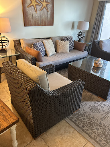 Read moreMy family stayed at sand cay beach resort unit 203 from 7/19 to 7/26 We have stayed in This unit before and it was nice. We selected the unit from the on line picture portal showing the inside of the unit. Upon walking into the unit we saw that the floor was visibly dirty and sandy with signs of what appeared to be black dirt on the floor. The window blinds were removed and there were black shower curtains hanging over the front patio door and windows. The furniture that was in the unit was outdoor plastic wicker looking furniture that was the most uncomfortable. Cushions kept sliding off when you moved and the square plastic coffee table was leaning to one side. The den/ tv are had some sort of couch that was sandy and not what was shown in the unit pics. That spare bedroom had cobwebs hanging from the ceiling and there were visible signs that the popcorn ceiling needed cleaning or painting. The only nice thing about this unit was the view and the beach tent. The master bedroom had an array of furniture that looked like a lounge. The owner did not update the interior pictures on line. Had we seen the interior pics and the furniture, we would have never rented this unit. It was a total disappointment to have to stay In There for the week. The staff is friendly and courteous and are always looking to assist if you have any problems.