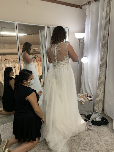 First place I went to and ironically the first dress I tried on was THE ONE. I picked out a ton of dresses as they have a huge variety of custom and off the rack options. Natalie picked one for me to try on first out of my selection. It was never what I envisioned my dress to look like, but as soon as I had it on I knew it was the one, and off the rack!! These ladies know what works for your body style. I was worried some dresses I wouldn't be able to try on being a size 14/16 street clothes, but they had so many options and ways to clamp you in to try on the dresses and truly feel beautiful. I appreciated that they were not over the top or pushy. I enjoyed my time picking it out and trying on the remaining dresses with my mom and friends. They had a ton of accessories to try on as well. I even found my veil and head piece from here. Natasha also helped shape this gorgeous dress perfectly to me. They made this process very easy. Everything from picking it out to getting it fitted. I recommend this shop to any and...