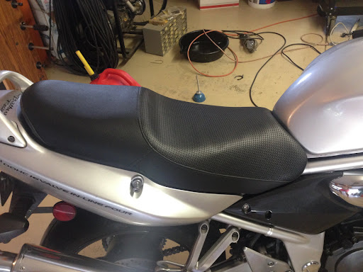 So, I'm worse off than when I started. I have a 1" square hole in my still-ratty, broken-down seat, lost an hour out of my day, and I'll now have a sore butt after my long drive this week. And if I want the seat fixed when I get back, sorry buster it's still full price. Yes, it could be worse, so my advice if you want to do business with this shop: hound 'em and make sure the owner is 100% engaged in every step. Get his mobile number of you have to. Me? I'm probably not going back. Time to order...