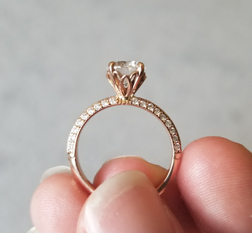 They did have a nice, varied selection. We eventually found something my wife liked. This part of the experience I felt like we were wasting this woman's time. I could not shake the feeling that we were being judged. We do not dress in fancy clothes, and I am a left leg above knee amputee, so I think she thought we had no business buying $8,000 dollar rings, and we were just wasting her time. She was knowledgeable about the different metal options, white gold vs platinum, rose gold ect. But when I asked to see a platinum next to a white gold it seemed like a real hassle to do so.
