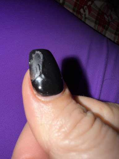 Really surprised after popping in for a nail repair and asking for assistance in picking a random color for one finger I was told by the nail tech “don’t ask me any questions” I told her just go with any random black she had. The price was $5 to get a new nail and $5 to repair the original nail with powder. I seriously was shocked when she asked me a question “why do you want a new nail” ? I’m Floored! The powder was applied so think it did not dry after multiple attempts under the lamp heat and the machine. She decided oh well and moved forward trying to use the drill, which does not work on damp or I guess very porous powder. Needless to say she ended up having to use black polish and you could definitely see the old red peaking through! I left with what looks as a thick eagle talon on my thumb and an equally strangely shaped pinky finger. I can not walk around missing nails but next time if I break one and can’t get to my nail tech then I shall get a press on and do exactly that! Press on! Save your time, patience and money for another salon. This was...