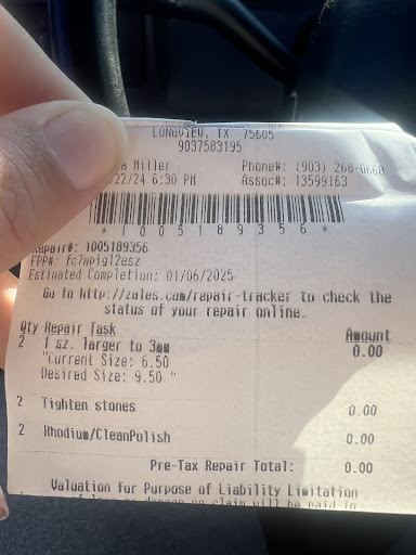 Read moreCame to pick up my wedding rings that were getting resized and was told they can’t release them to me because their POS system is down. Okay, sucks, I leave. About 2 minutes later, I walk back to the store to ask if I could leave my receipts there for them to scan out when the system was back up. Just a thought. I walk back in, they obviously already know what I’m there for. 2 of 4 associates were helping other customers and the other 2 stood there and literally stared at me, making eye contact without saying a word or asking if I had any other questions. One guy helping a customer finishes up so I attempted to approach him and he swiftly turned and walked the other direction. So I force words with one of the associates who stood staring at me for 5 minutes and ask him and let him know that I live over an hour away and don’t know when I can come back. I was told “no, sorry”. HOWEVER, I’m standing here, in real time, watching them accept another customer’s rings in for cleaning and watched them print and hand over a receipt to her. But the POS system isn’t working and they can’t do anything? Doesn’t really add up. Aside from that, it’s a complete lack of customer service to not have any options available for customers that have trusted jewelry they already own in the company’s hands.