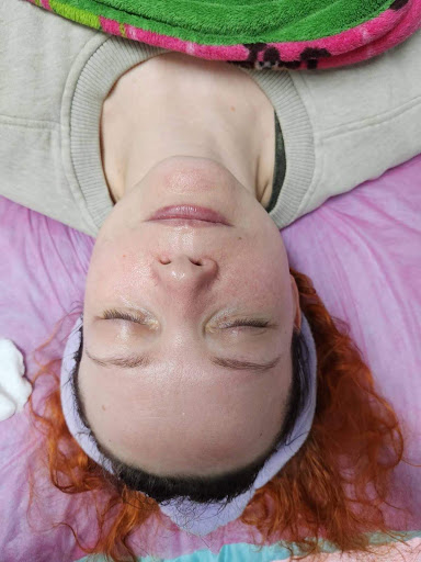 Today I went in for an hour facial. You can see for yourself the difference it made (She focused on one side of my face, took the pic, then finished up the other side).