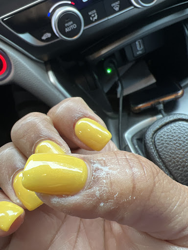 Read moreThe young tech that done my pedicure done an ok jobâŚThey left my hands soaking in acetone for an hour and a halfâŚThe nail tech cut one of my cuticles with something that she wasnât even supposed to be using on my cuticles, literally until it bled⌠She didnât buff my nails before she painted themâŚShe didnât oil my cuticles after she had the nerve to cut my cuticles to death and make my finger bleedâŚI had to ask her several times to use the device to remove the excess acrylic from under my nails, and she still tried doing it with her fingers insteadâŚThe way my fingers look in the photo is exactly how she was satisfied with leaving them as she got up to move on to the next person⌠$100 later for nails and toes, the only good thing they done was paint them right⌠I HAVE NEVER BEEN SO DISAPPOINTED IN MY LIFE WITH A NAIL SHOP OR ABOUT NAIL TECHS⌠I WONT...